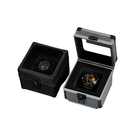 Aluminum is the material of choice for watch cases designed for nomadic collectors. Extremely lightweight yet robust, it offers excellent protection while remaining easy to transport. Aluminum boxes are often fitted with secure closures and reinforced corners for maximum protection on the move.