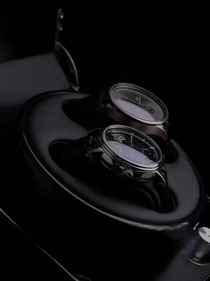 This Watch winder is designed to accommodate 2 automatic watches, offering an elegant and practical solution for winding and protecting your most precious timepieces.