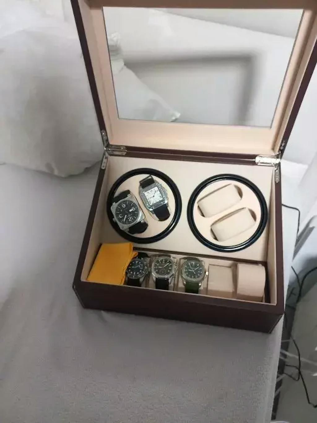 È un prodotto di alta gamma. Gli interni in pelle e il legno verniciato ne fanno un oggetto decorativo oltre che un Carica orologi ad alte prestazioni.
