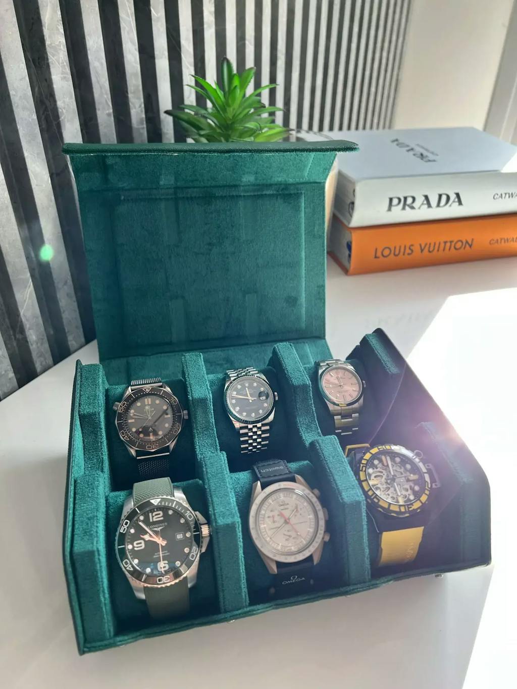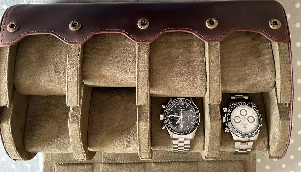 Ho acquistato questa custodia per i miei orologi e sono rimasto impressionato dalla finitura. La pelle è morbida al tatto e ogni dettaglio mostra una qualità impeccabile.