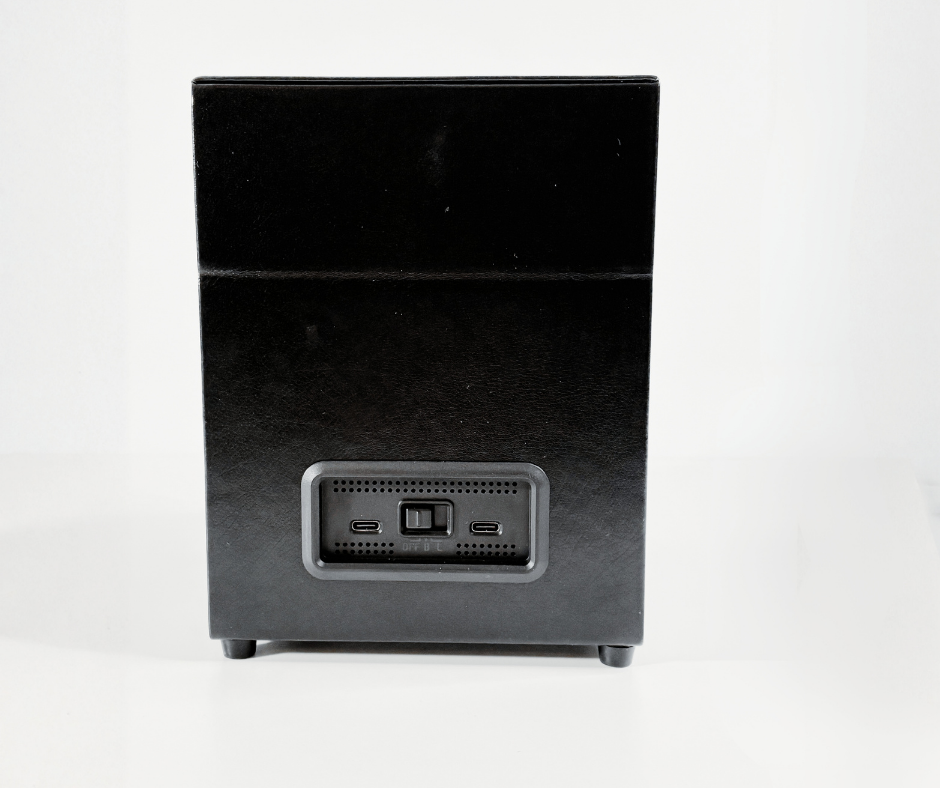 Le Remontoir en Cuir Noir peut être alimenté via un adaptateur EU inclus et un câble USB-C.