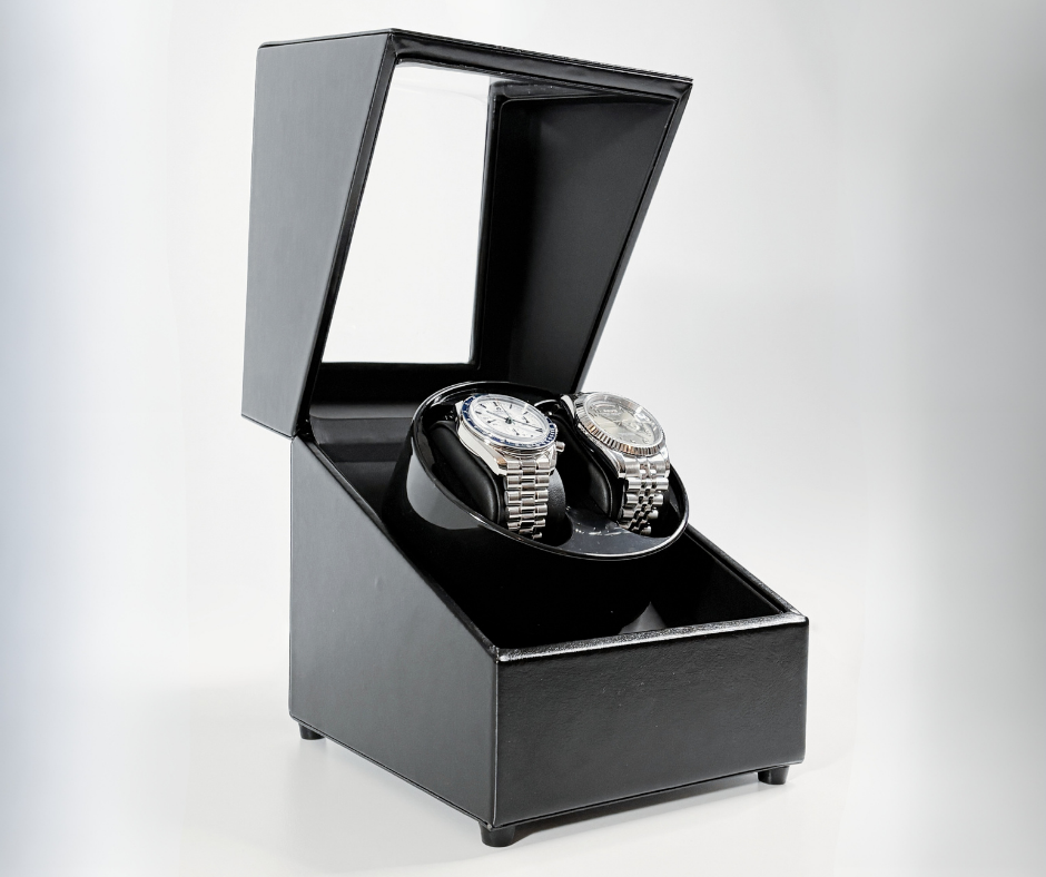 Ce remontoir est conçu pour accueillir 2 montres automatiques, offrant un espace de rangement sécurisé et un remontage optimal pour vos montres de collection.