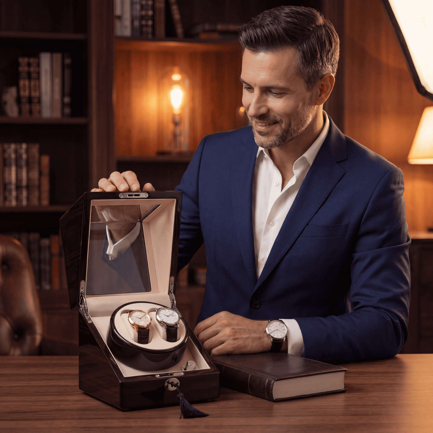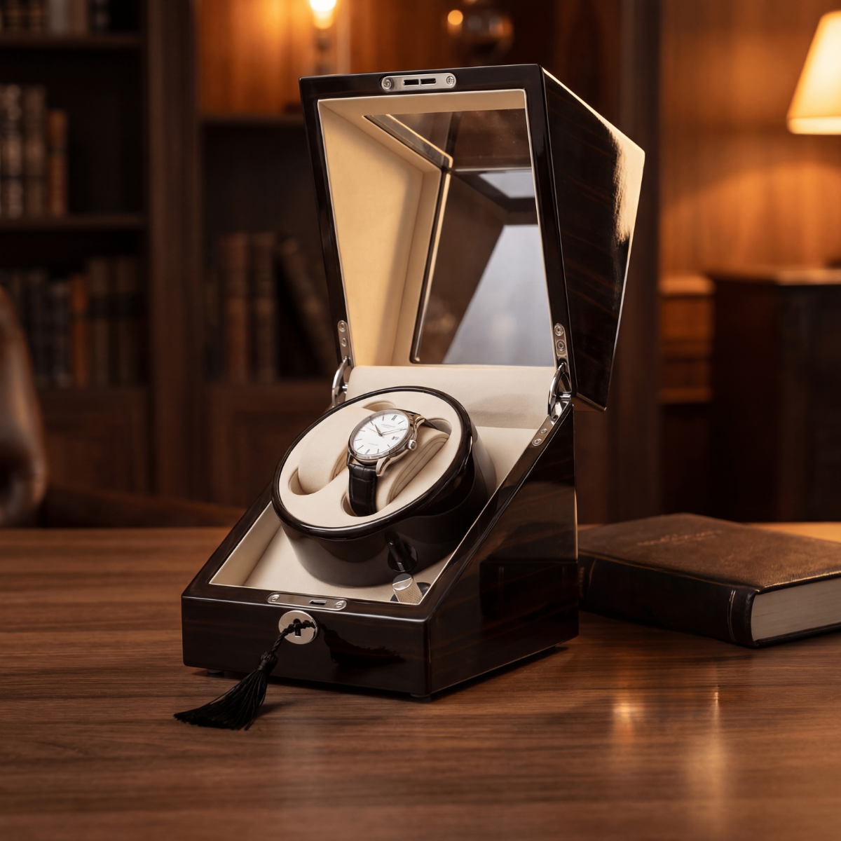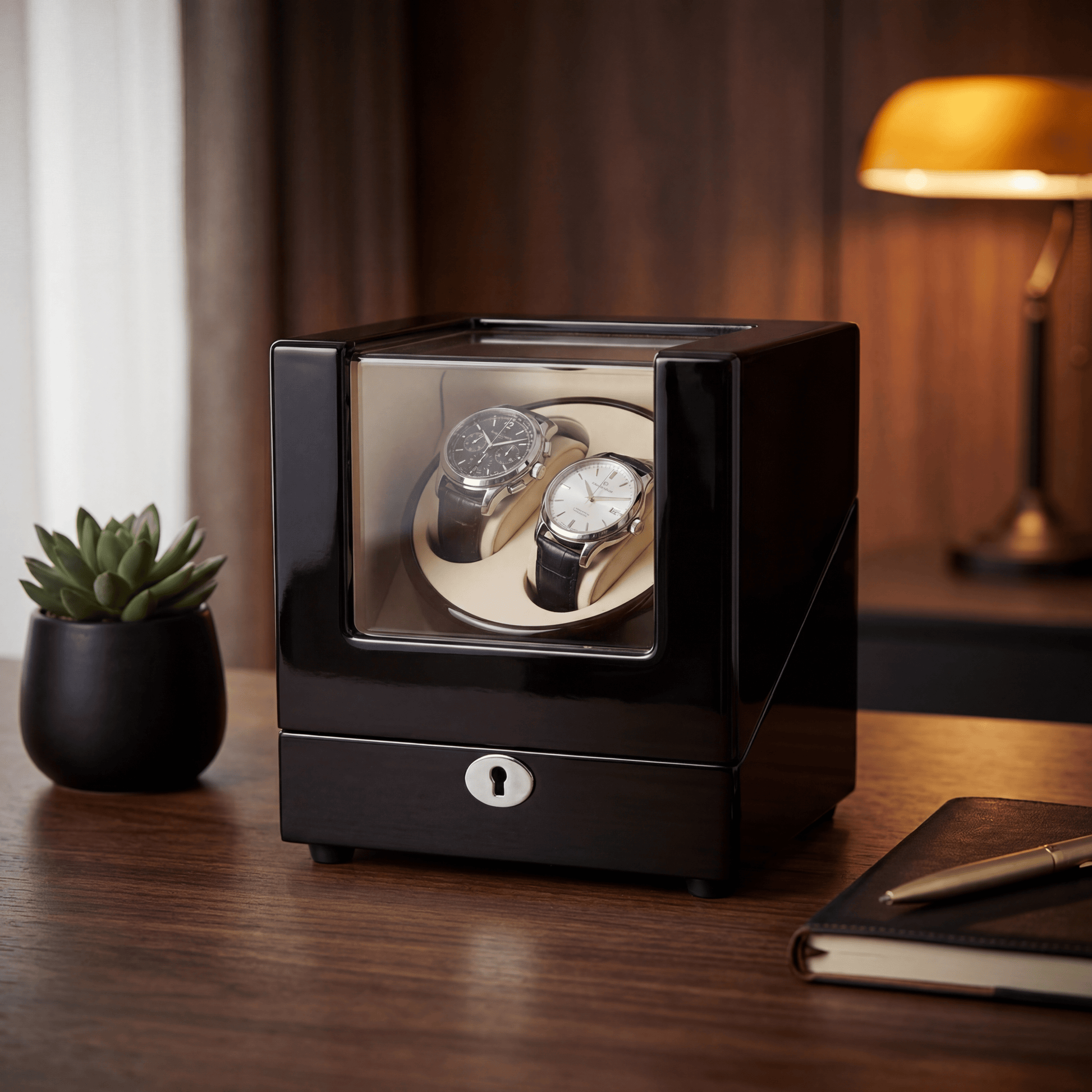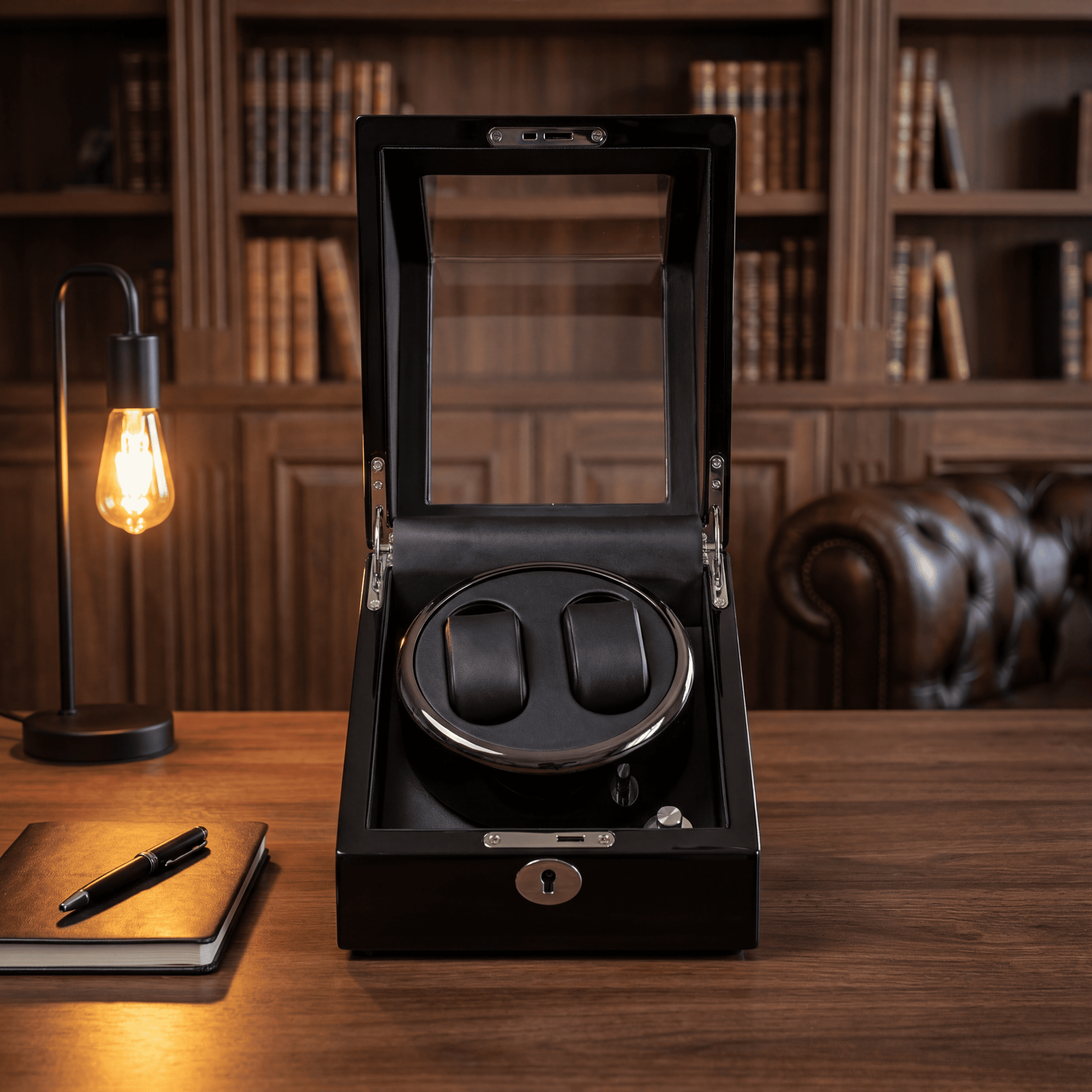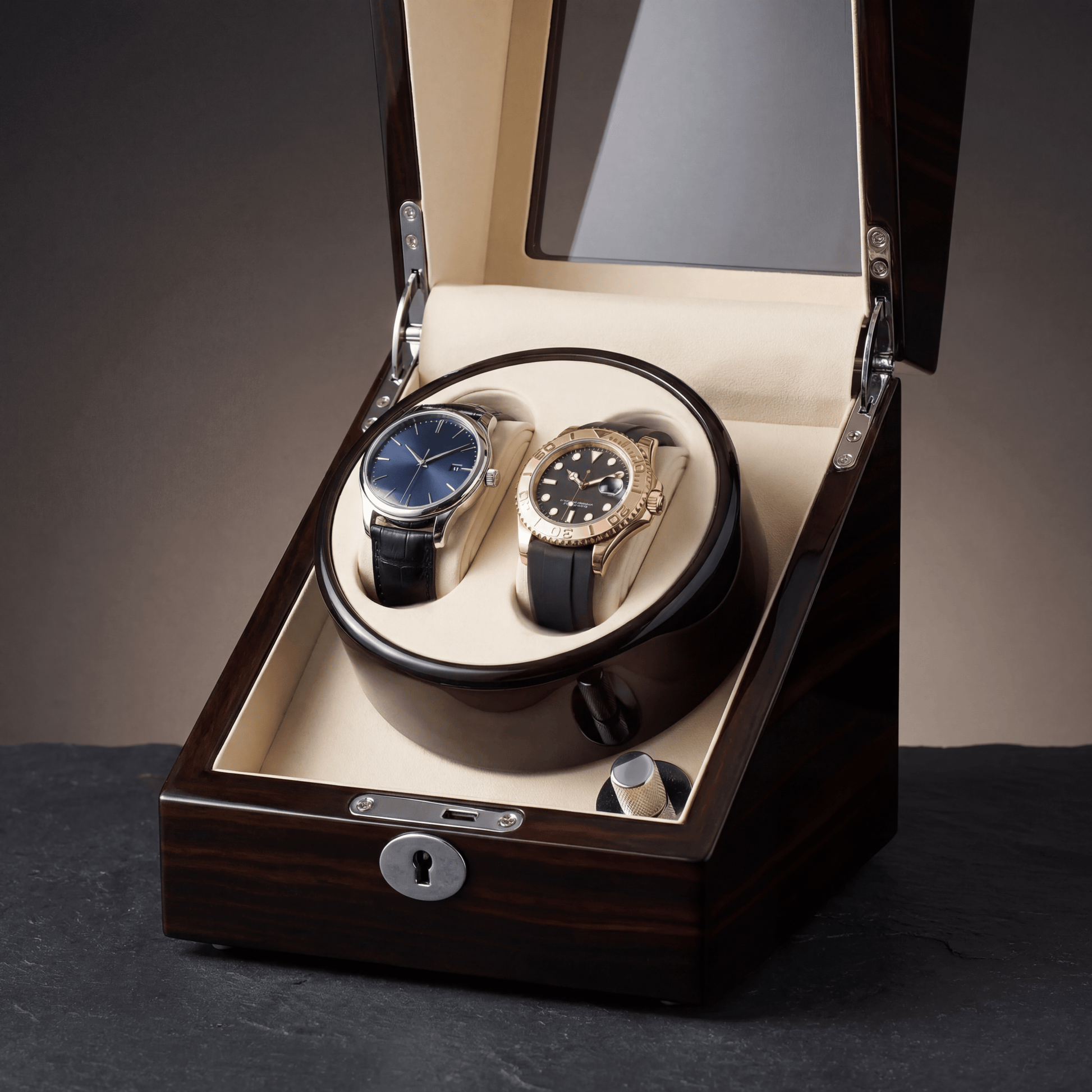 Ce remontoir est conçu pour accueillir 2 montres automatiques, offrant une solution élégante et pratique pour remonter et protéger vos pièces les plus précieuses.