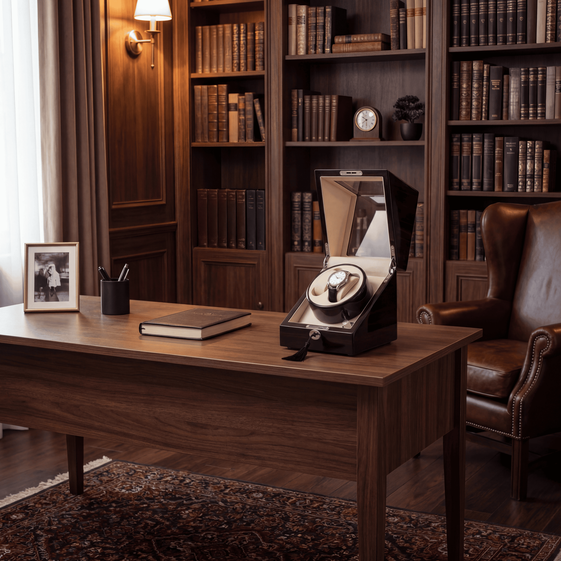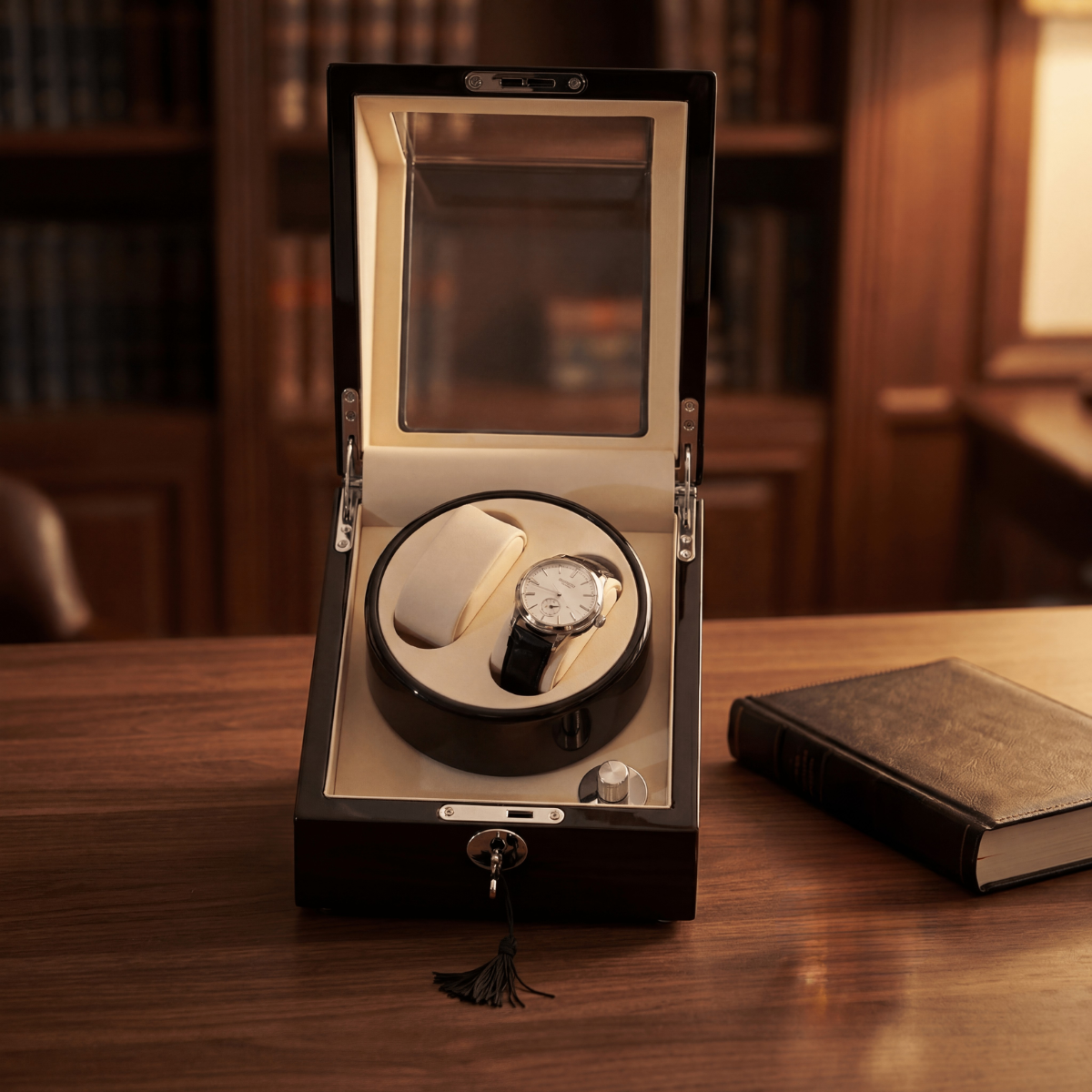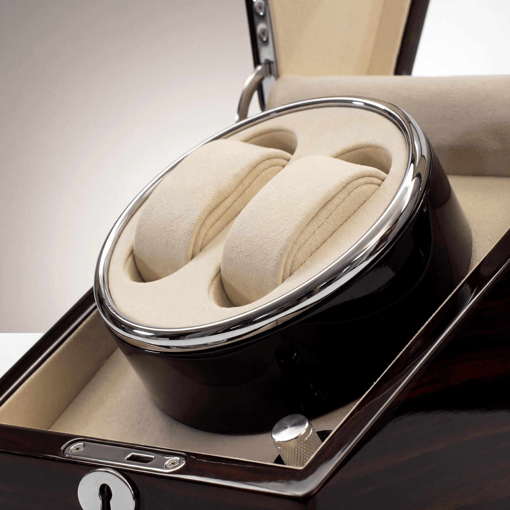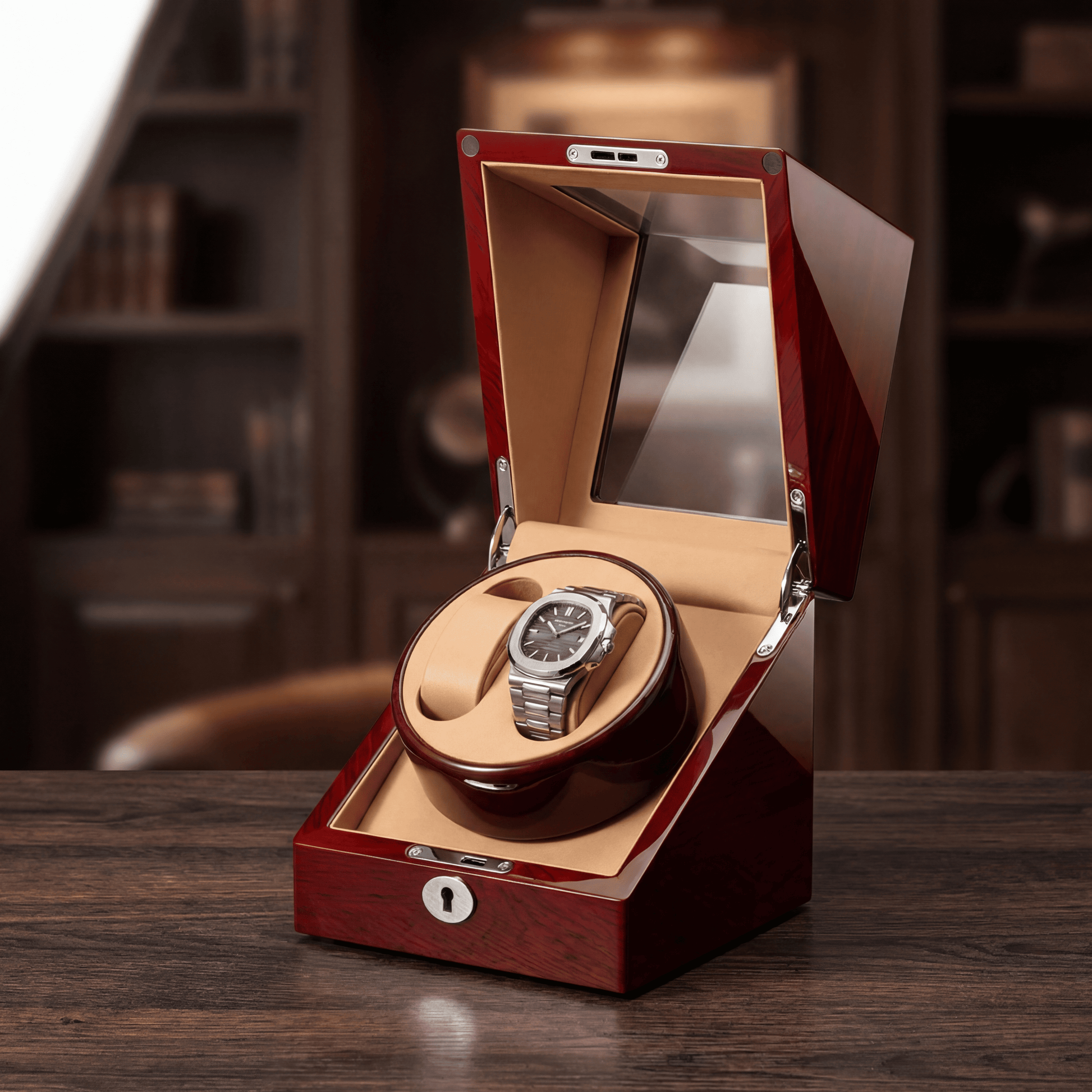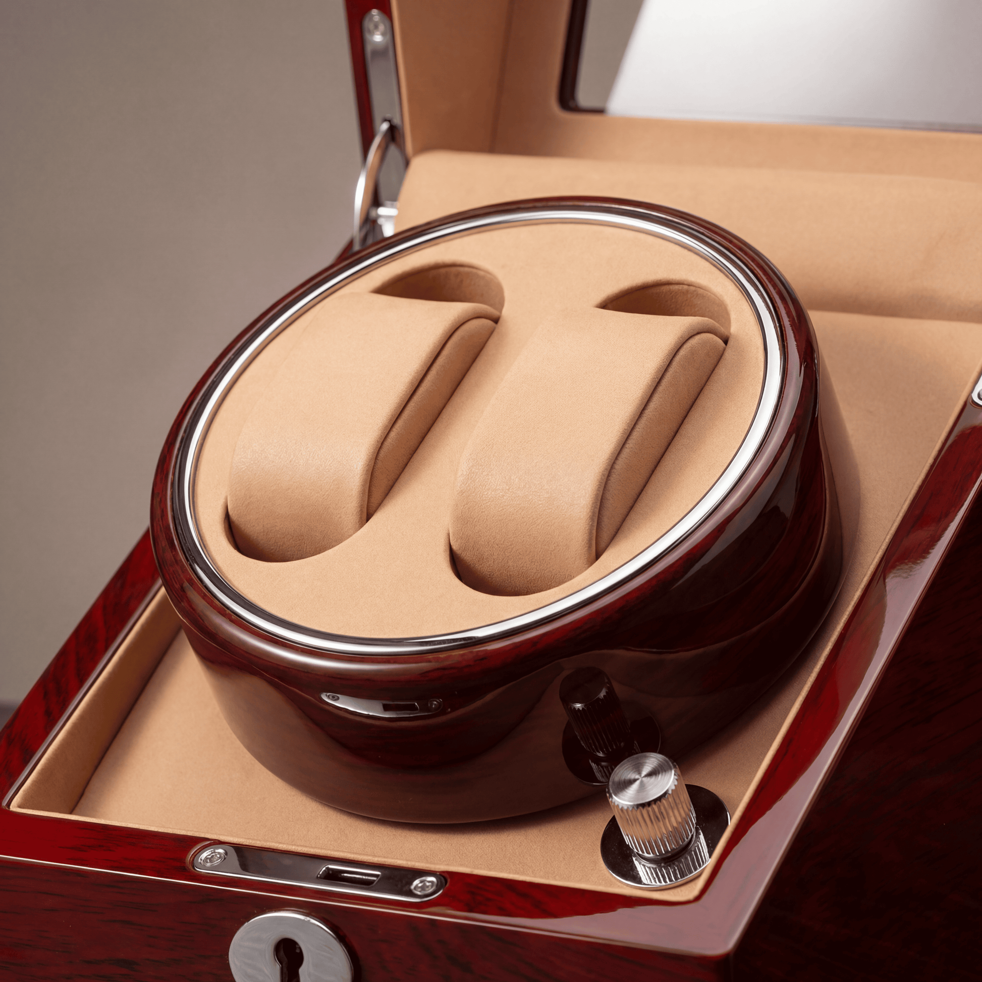 Ce remontoir est conçu pour accueillir 2 montres automatiques, offrant une solution élégante et pratique pour remonter et protéger vos pièces les plus précieuses.